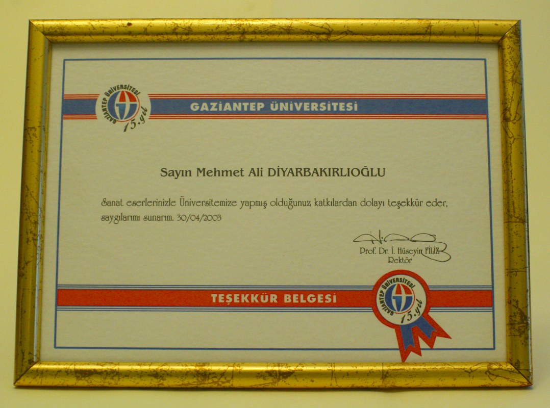Gaziantep Üniversitesi Teşekkür Belgesi