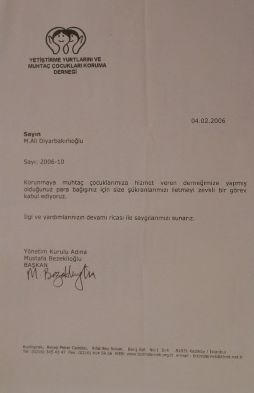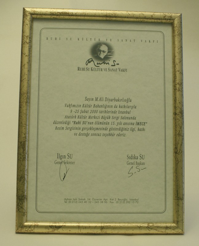 Barış Derneği Teşekkür Belgesi