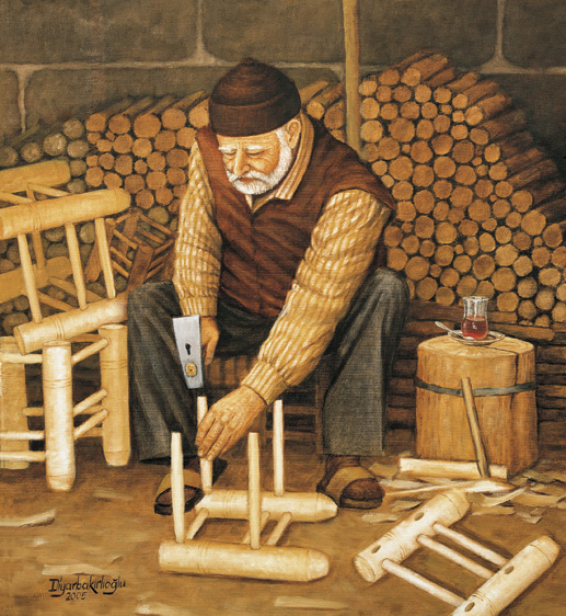 Yanı başımızda oturan son kalfasına dönüyorum sandalyecilik mesleğinin.